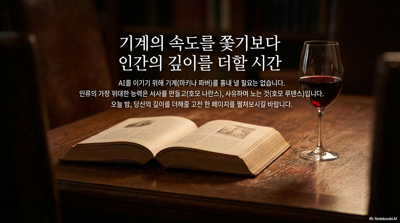 기계는 지능을 가질 수 있지만, 인생의 허무함을 견디거나 타인의 고통에 눈물 흘리지는 못합니다. 우리의 '나약함의 서사'는 역설적으로 기계로부터 우리를 지켜주는 가장 강력한 방패입니다. 이제 스스로에게 물어야 할 시간입니다.