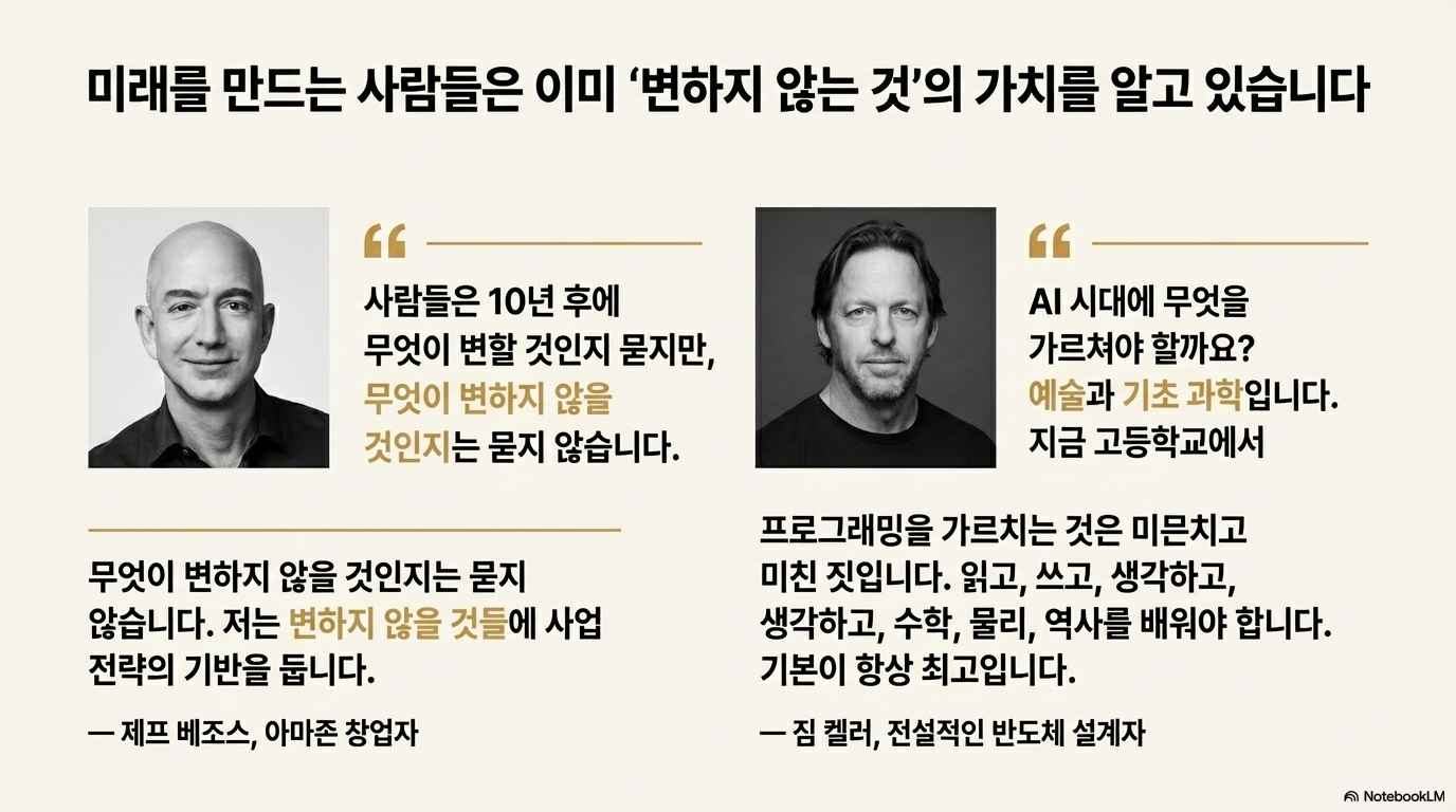 이 통찰은 세계적인 경영인의 전략과도 맞닿아 있습니다. 아마존 창업자 제프 베조스는 이렇게 말했습니다.