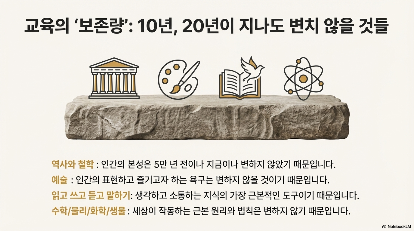 이 비유는 교육에 그대로 적용됩니다. AI처럼 미래를 예측하기 어려운 시대일수록, 변화의 흐름을 쫓아가려고 애쓰기보다 ‘변하지 않는 것’이 무엇인지 먼저 찾아야 한다는 것이 김 교수의 핵심 주장입니다. 변화를 제대로 이해하려면, 먼저 변하지 않는 기준점을 세워야 한다는 물리학자의 접근법입니다.