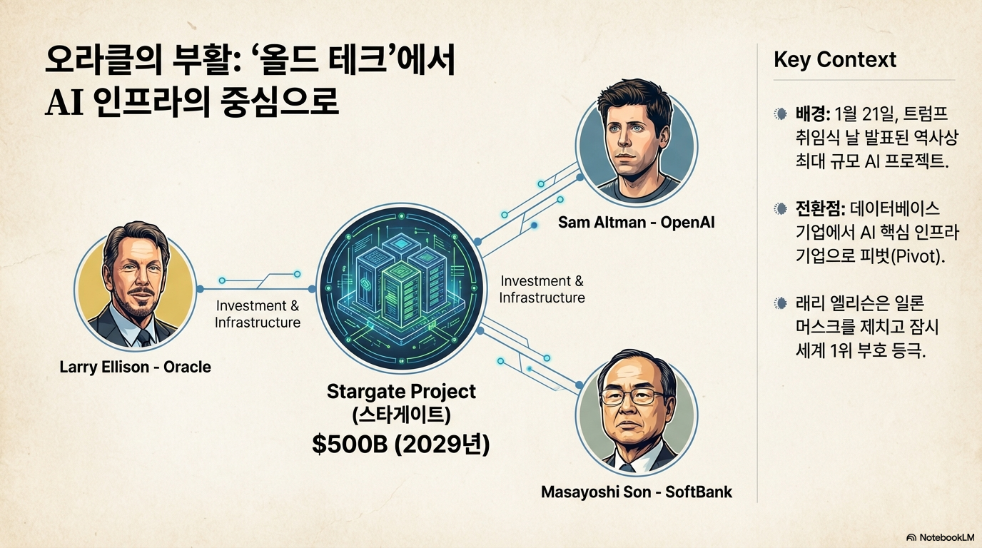 AI 붐의 중심에 선 기업 '오라클'의 이야기는 현재 AI 산업의 명과 암을 상징적으로 보여줍니다. 오라클은 무려 4,550억 달러(약 675조 원)에 달하는, 사실상 미래에 벌어들일 돈을 미리 약속받은 '자녀 이행 의무(RPO)'를 확보하며 시장의 기대를 한 몸에 받았습니다. 이는 작년 동기 대비 세 배 이상 늘어난 경이로운 수치였습니다. 이 소식에 주가가 급등하며 창립자 래리 엘리슨이 잠시나마 세계 1위 부자에 오르는 기염을 토하기도 했습니다.