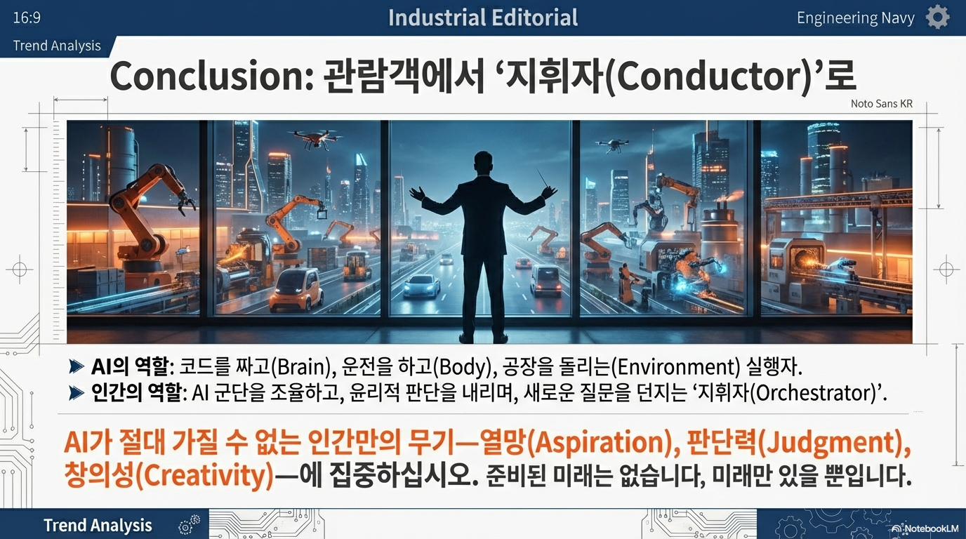 이 거대한 변화의 물결 속에서 우리는 스스로에게 질문을 던져야 합니다. AI가 우리의 집과 차, 심지어 우리의 뇌까지 들어오는 세상에서, 우리 인간에게 남은 가장 중요한 역할은 무엇일까요?