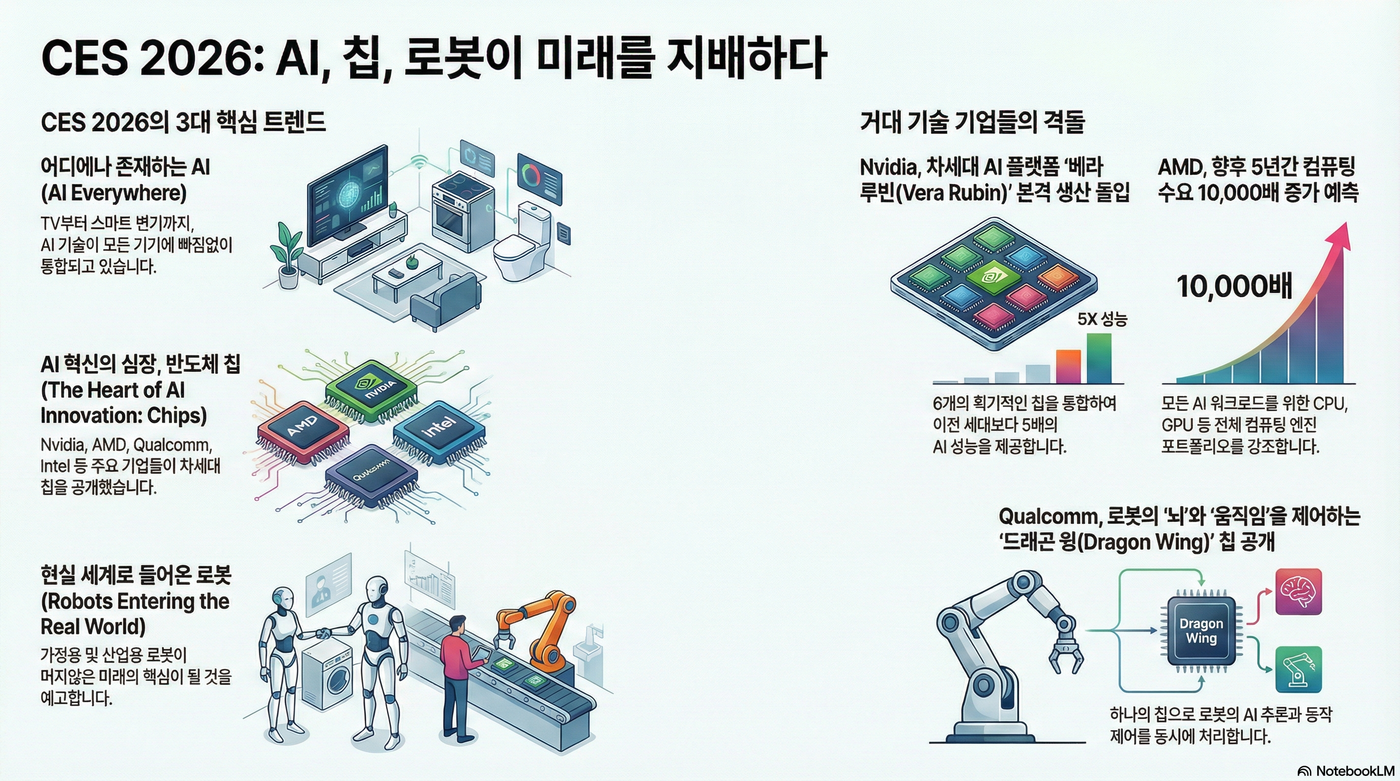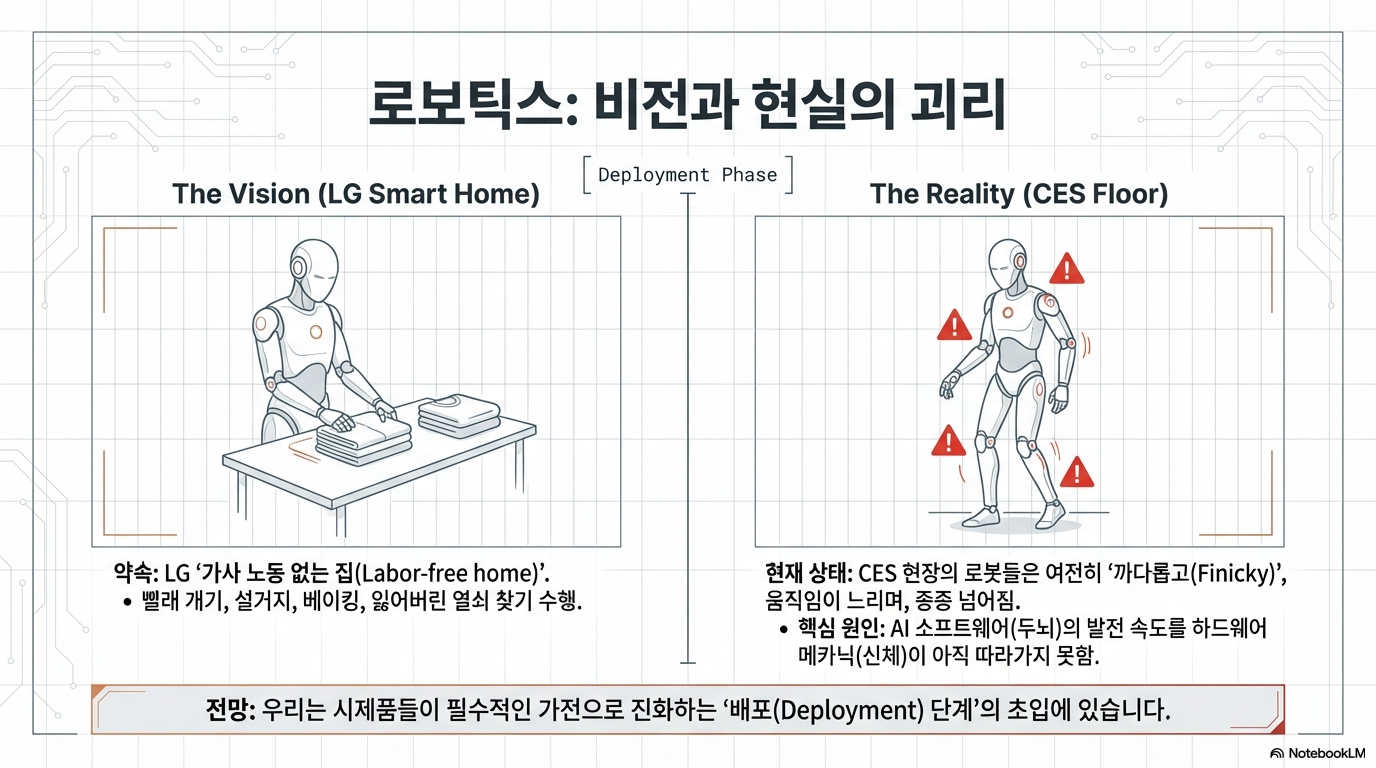 매년 초 라스베이거스는 기술의 미래를 외치는 목소리로 가득 찹니다. 올해 CES 2026 역시 AI TV, AI 칫솔, 심지어 AI 화장실까지 등장하며 'AI'라는 단어가 소음처럼 느껴질 정도였습니다. 이런 기술 뉴스의 홍수 속에서 우리는 무엇이 진짜 중요한 변화이고 무엇이 반짝하고 사라질 유행인지 분간하기 어렵습니다.
