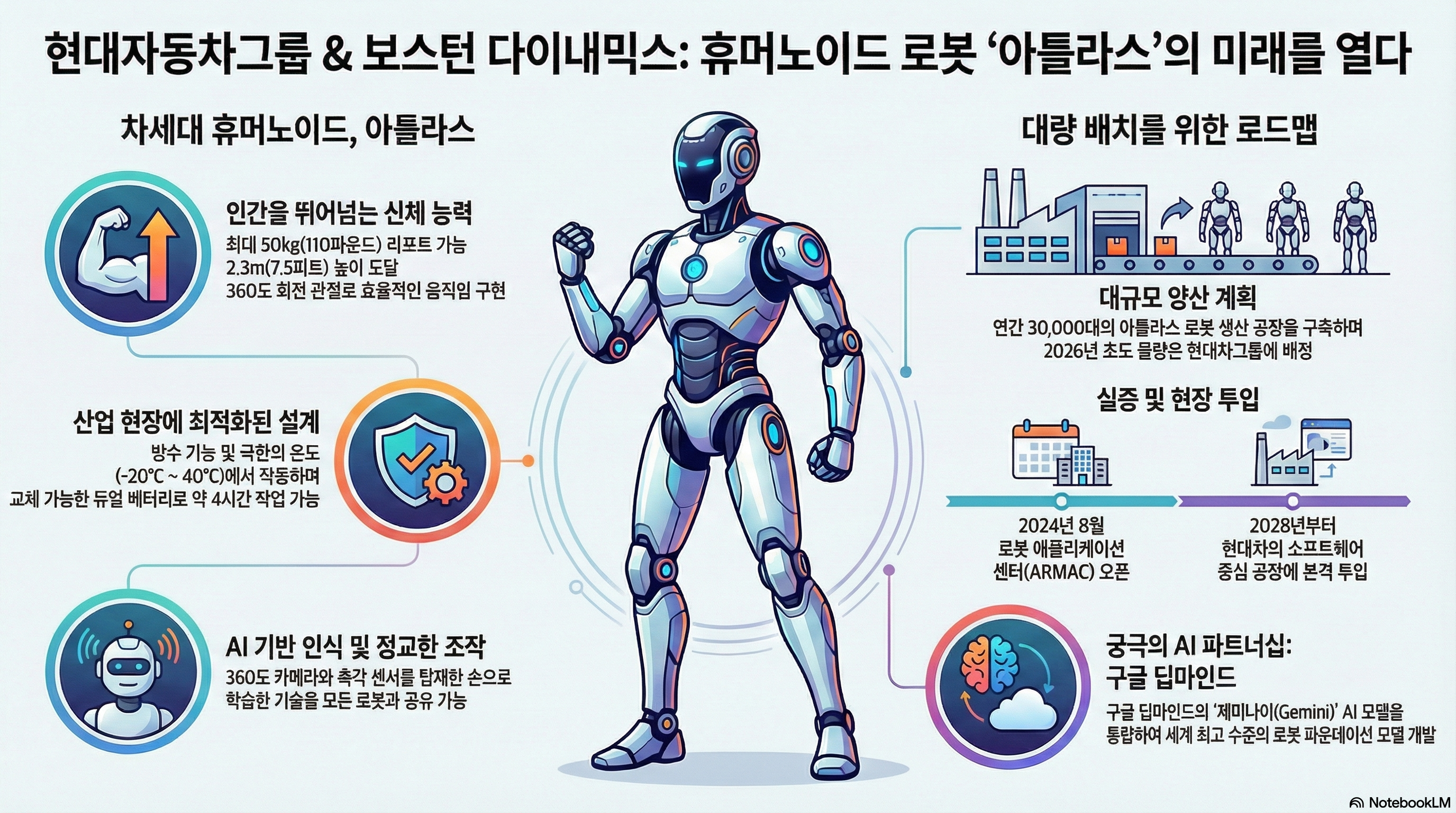 이 협력의 목표는 명확합니다. 구글이 기존 제미니 모델에 '행동(action)'이라는 새로운 양식을 추가하여 개발한 제미니 로보틱스(Gemini robotics) 모델과 같은 고도화된 AI 파운데이션 모델을 보스턴 다이내믹스의 뛰어난 물리적 역량을 갖춘 아틀라스 로봇에 통합하는 것입니다.