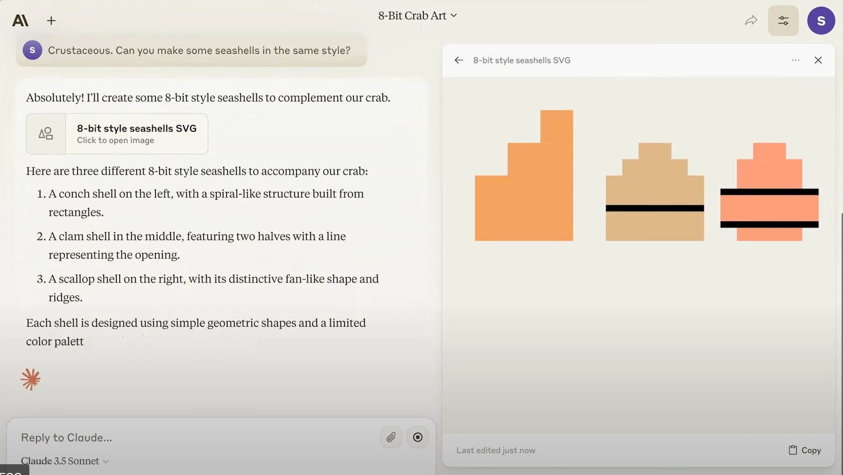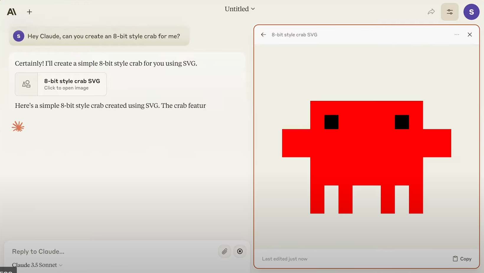 Hey Claude, can you create an 8-bit style crab for me?