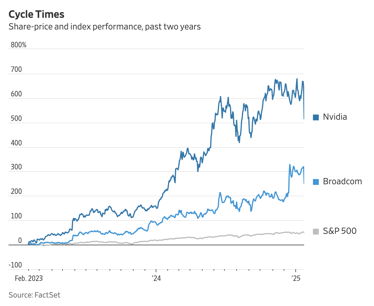 DeepSeek의 발표는 Nvidia, Broadcom, Marvell 등 AI 칩 제조업체들의 주가를 급락시키는 원인이 되었다. Nvidia와 Broadcom의 주가는 하루 만에 각각 14% 이상 하락했으며, 기술 중심의 나스닥 지수는 3% 하락을 기록했다. 특히, AI 클라우드 컴퓨팅 서비스를 주도하는 Microsoft와 Google의 주가 역시 각각 3%와 4%대의 하락세를 보였다.