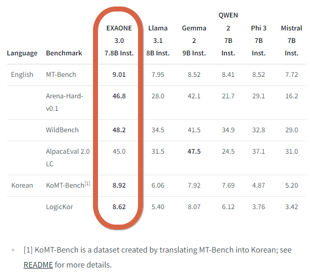 https://huggingface.co/LGAI-EXAONE/EXAONE-3.0-7.8B-Instruct