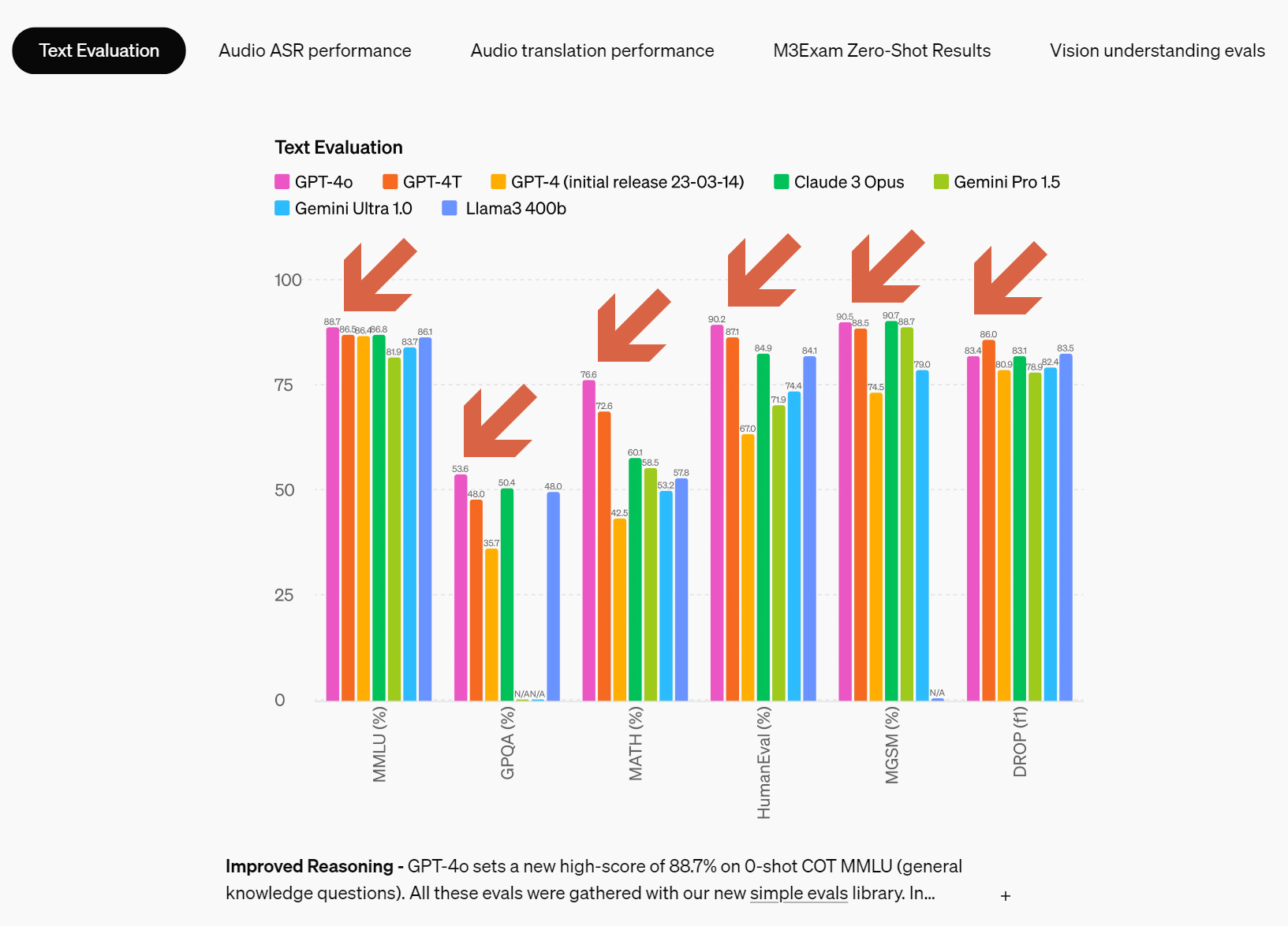GPT-4o와 함께 우리는 텍스트, 비전, 오디오 전반을 아우르는 단일 새로운 모델을 엔드 투 엔드로 훈련했습니다. 즉, 모든 입력과 출력이 동일한 신경망에 의해 처리됩니다. GPT-4o는 이러한 모든 모달리티를 결합한 최초의 모델이므로, 우리가 모델의 가능성과 한계를 탐구하는 것은 이제 막 시작에 불과합니다.
