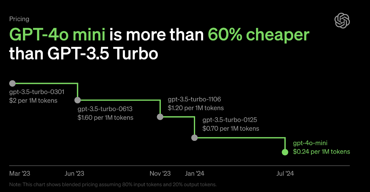 지난 몇 년 동안 AI 지능의 놀라운 발전과 비용의 상당한 감소를 목격했습니다. 예를 들어, GPT-4o mini의 토큰당 비용은 2022년에 도입된 덜 유능한 모델인 text-davinci-003 이후 99% 감소했습니다. 우리는 모델의 기능을 향상시키면서 비용을 계속 낮추는 이 궤도를 유지할 것입니다.