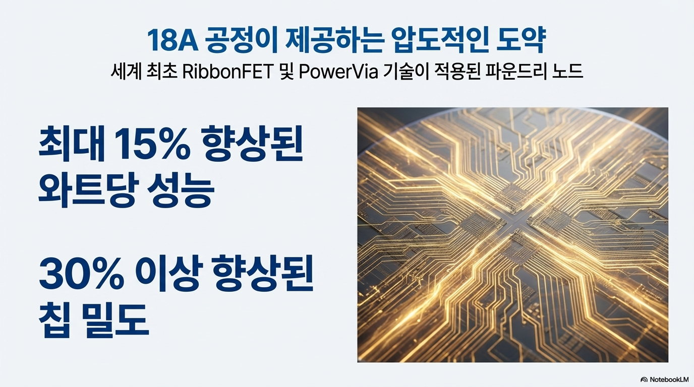 그렇다면 앞서 언급된 전력 효율, 그래픽 성능, AI 연산 능력의 모든 혁신은 어디에서 비롯된 것일까요? 그 비밀 병기는 바로 Intel이 수년간 준비해 온 반도체 제조 공정의 근본적인 돌파구, '18A' 공정에 있습니다. 지난 몇 년간 업계에서는 Intel이 TSMC와 같은 경쟁사에 비해 공정 기술에서 뒤처졌다는 평가가 지배적이었습니다. 하지만 18A의 성공적인 양산은 이러한 흐름을 뒤집는 거인의 귀환을 알리는 신호탄입니다.