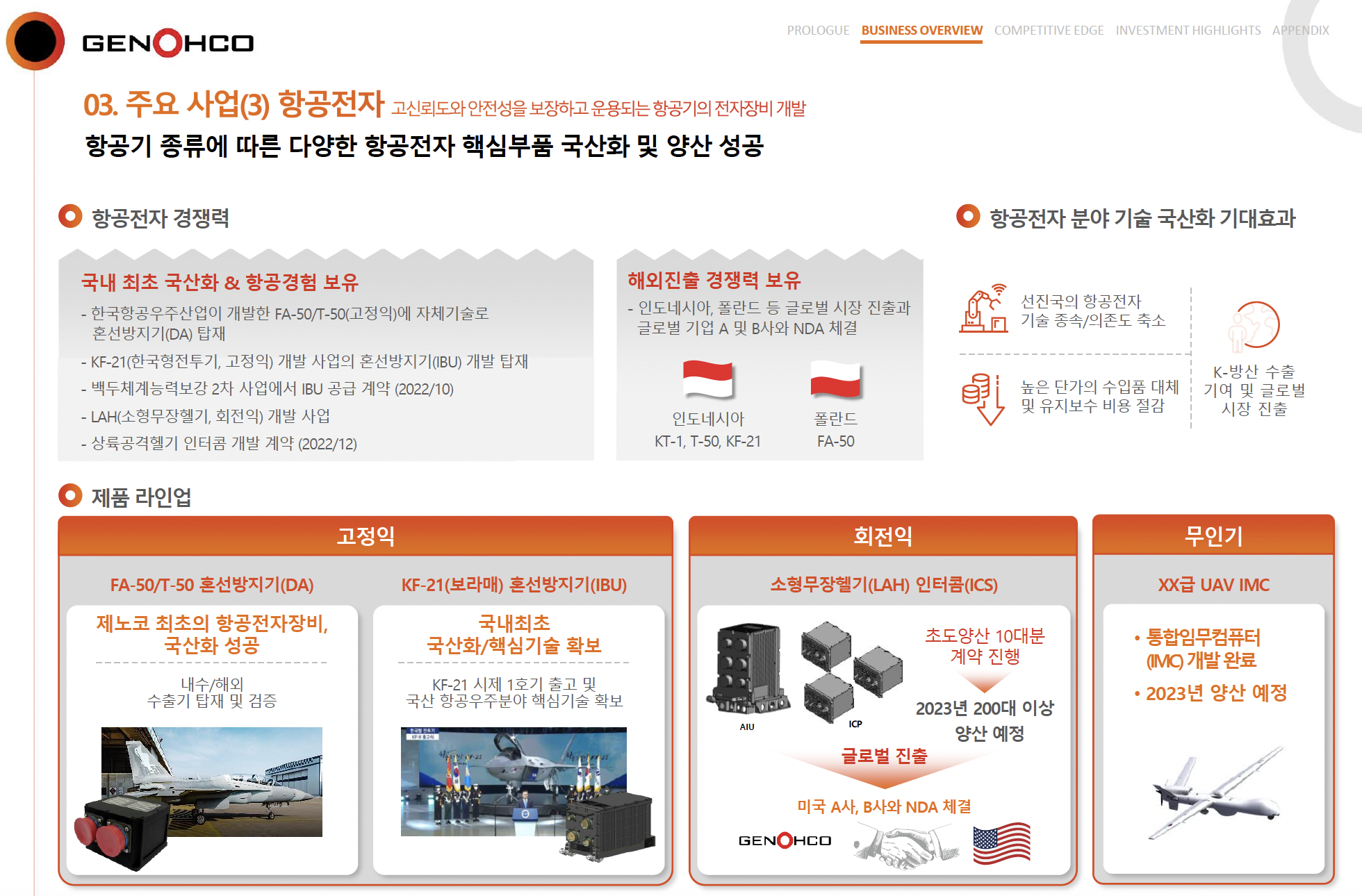 KAI와 제노코의 협력은 특히 항공전자 부품의 국산화를 촉진하는 데 있어 중요한 의미를 갖습니다. 현재 대한민국은 항공전자 부품과 위성 부품의 상당 부분을 해외 수입에 의존하고 있는데, 이는 비용과 기술 자립성 측면에서 큰 부담이 됩니다. KAI는 이번 인수를 계기로 제노코와 함께 국산 항공기 플랫폼에 적용 가능한 항공전자 부품을 개발하여 해외 의존도를 줄이고 자립적인 기술 기반을 확립하는 전략을 펼치고 있습니다. 이를 통해 국산화율을 높여 가격 경쟁력을 확보함으로써, 국내외 시장에서의 경쟁력을 강화할 수 있습니다.