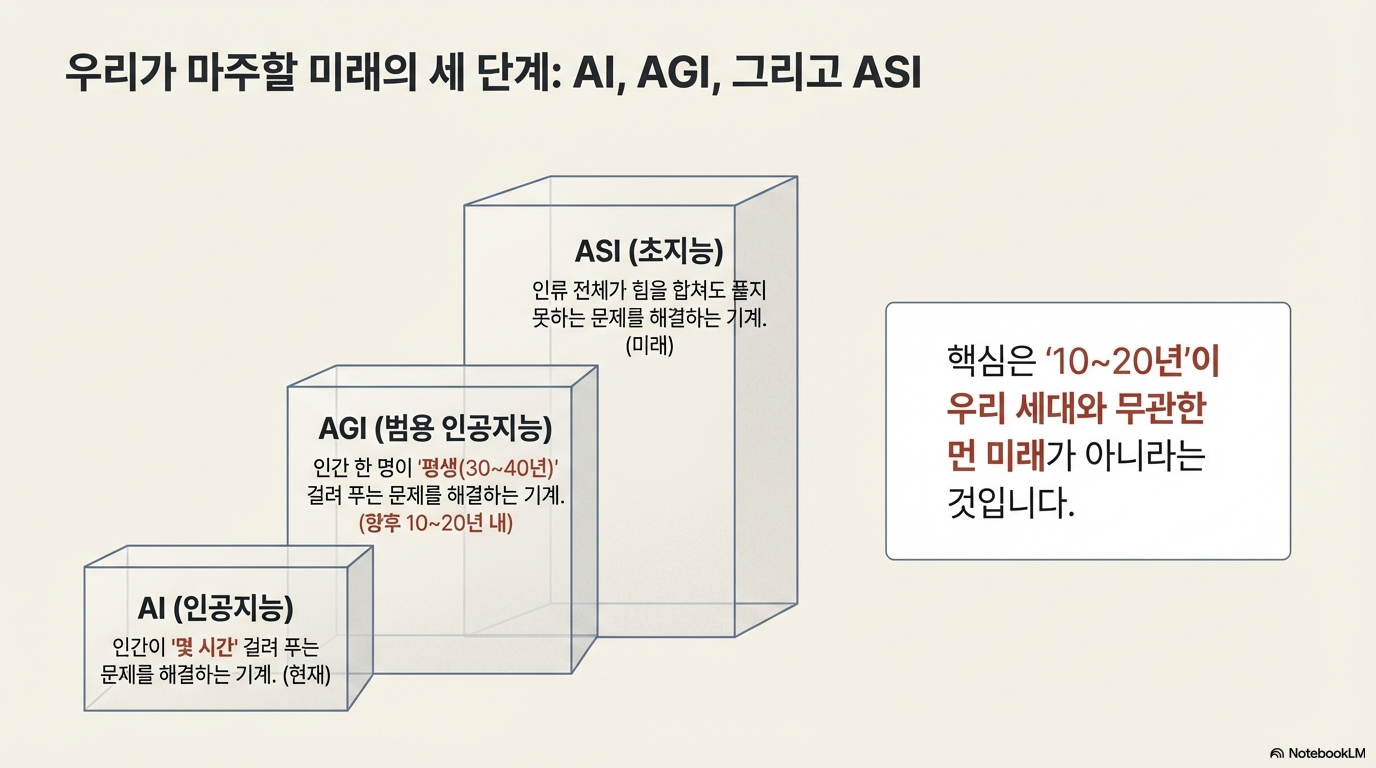 "AGI로 가는 시대에 노동의 가치는 점점 떨어지고 자본의 가치는 점점 늘어난다면 여러분들과 저는 앞으로 10년 20년 동안 미치도록 돈을 벌어야 됩니다. 자본을 축적하셔야 됩니다."