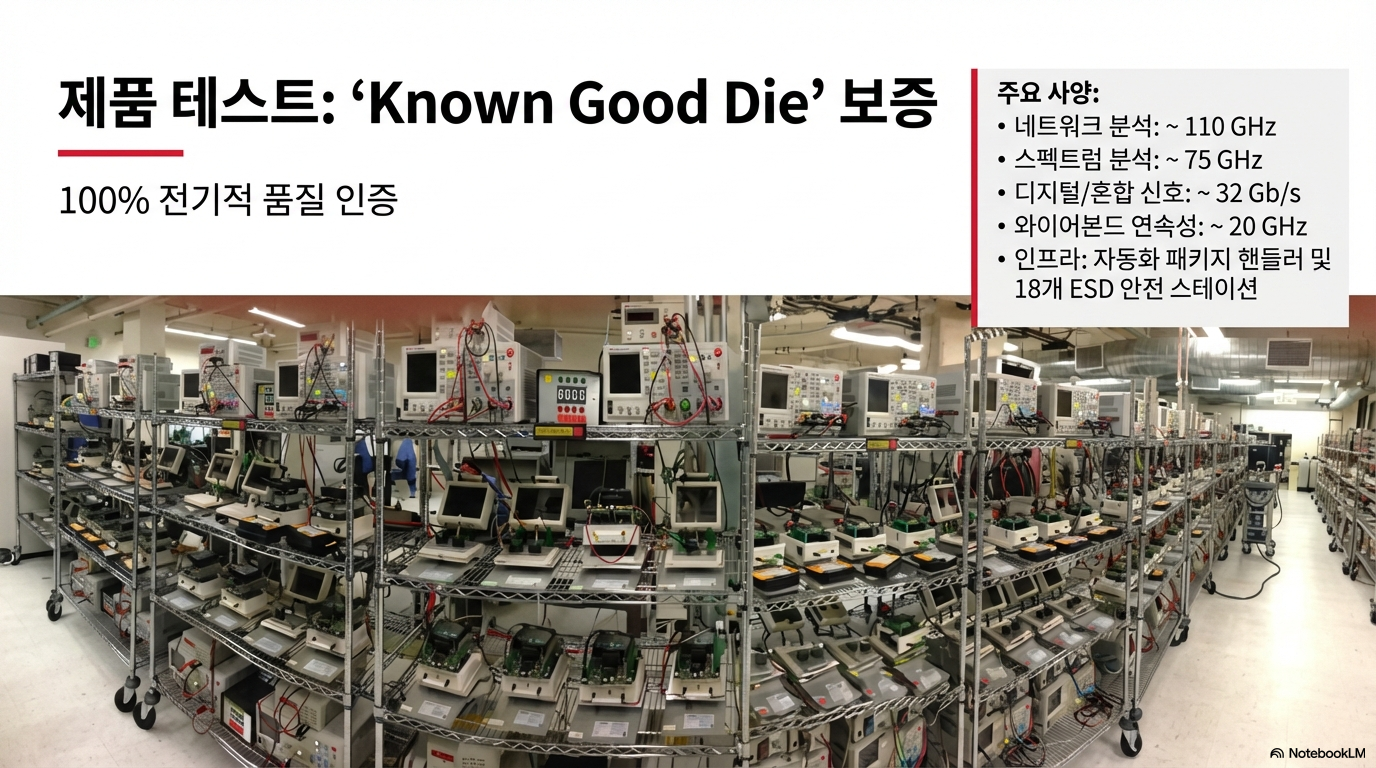 • 중규모 집적 배열 (MSI Array): 웨이퍼당 12,000개 이상의 트랜지스터를 테스트하여 초기 불량을 식별합니다.