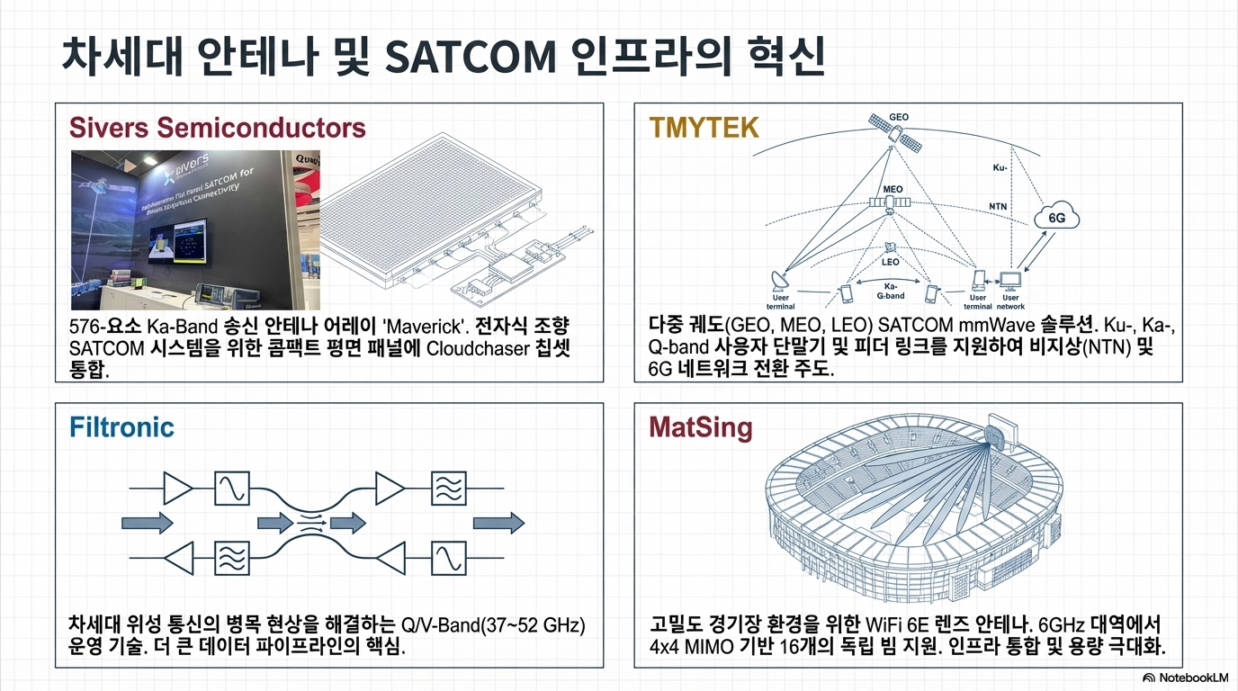 지상 기지국의 한계를 넘어서는 비지상 네트워크(NTN)는 이제 대중화 단계에 접어들었습니다. 특히 이번 행사에서는 단순한 커버리지 확대를 넘어, 거대 자본이 주도하는 초국가적 위성망에 대한 의존도를 낮추려는 '기술 주권(Sovereignty)' 확보 움직임이 두드러졌습니다.
