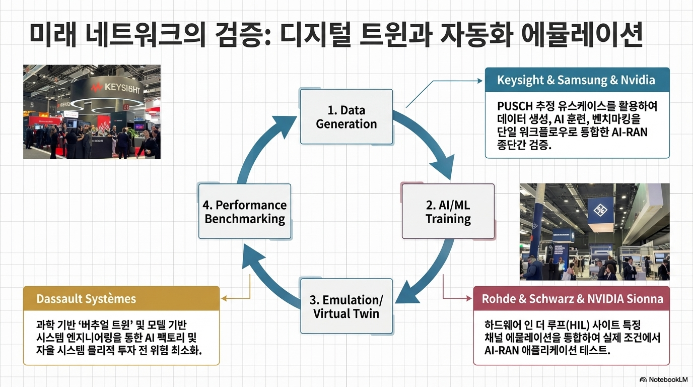 특히 Keysight, Samsung, NVIDIA가 결성한 전략적 동맹은 통신 업계의 판도 변화를 예고하는 결정적 장면이었습니다. 이들은 AI 기반 RAN(Radio Access Network) 모듈 검증을 위한 엔드 투 엔드 워크플로우를 선보였는데, 이는 데이터 생성부터 학습, 벤치마킹까지 하나의 자동화된 흐름으로 통합한 혁신입니다. 이를 통해 운영업체들은 배포 리스크를 줄이면서도 혁신의 속도를 전례 없는 수준으로 끌어올릴 수 있게 되었습니다.