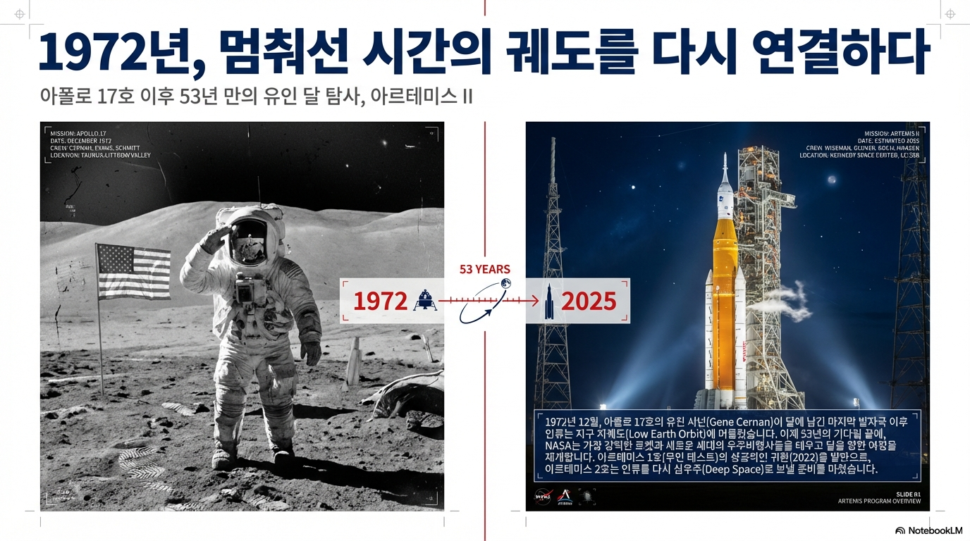 인류가 아폴로 17호 이후 반세기 만에 다시 달로 돌아갑니다. NASA의 아르테미스(Artemis) 프로그램은 인류의 우주 탐사 역사에 새로운 장을 열 것이라는 기대로 전 세계를 흥분시키고 있습니다. 강력한 로켓이 불을 뿜으며 하늘로 솟아오르는 장엄한 광경은 우리 모두의 가슴을 뛰게 만듭니다.