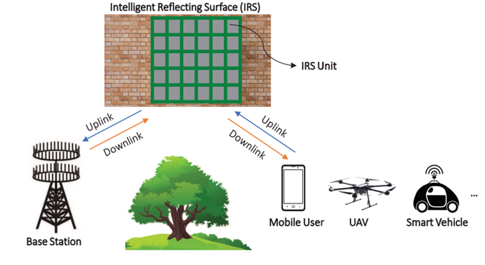 IRS(Intelligent Reflecting Surface, 지능형 반사면)는 수천 개의 작은 프로그래머블 메타 표면으로 구성되어 있으며, 입사하는 무선 신호의 위상, 방향, 세기 등을 조절하여 원하는 방향으로 반사시킬 수 있습니다. 일종의 ‘스마트 거울’처럼 신호를 목적지에 정밀하게 전달하는 기술입니다.