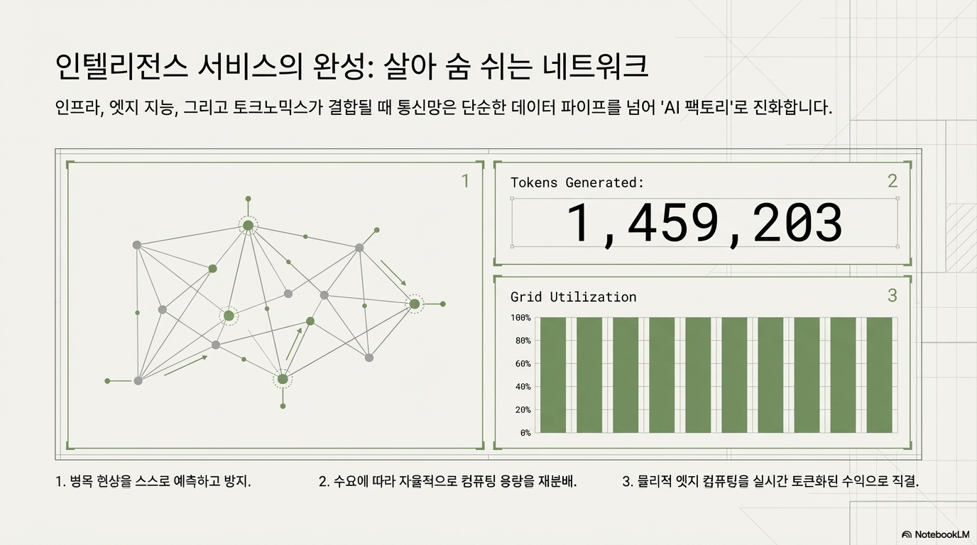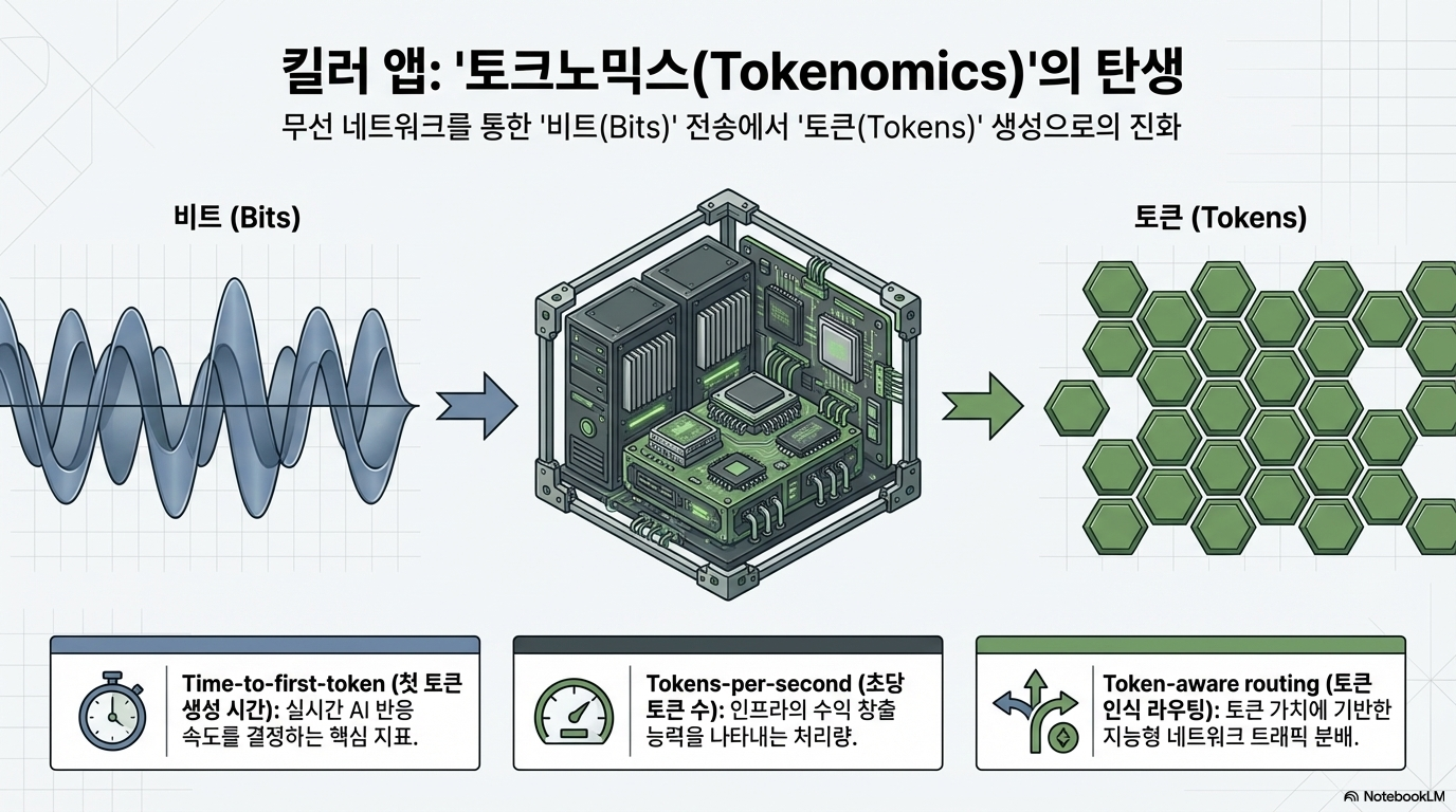 전통적인 통신망의 가치가 단순한 데이터 전송량(Bits)에 있었다면, AI 그리드 시대의 핵심은 생성된 지능의 단위인 **'토큰(Tokens)'**에서 창출됩니다. 우리는 이를 **'토크노믹스(Tokconomics)'**라 정의합니다. 이제 통신사의 수익 구조는 비트를 실어 나르는 대가가 아니라, 실시간 AI 에이전트의 가치를 얼마나 효율적으로 보장하느냐에 따라 결정될 것입니다.