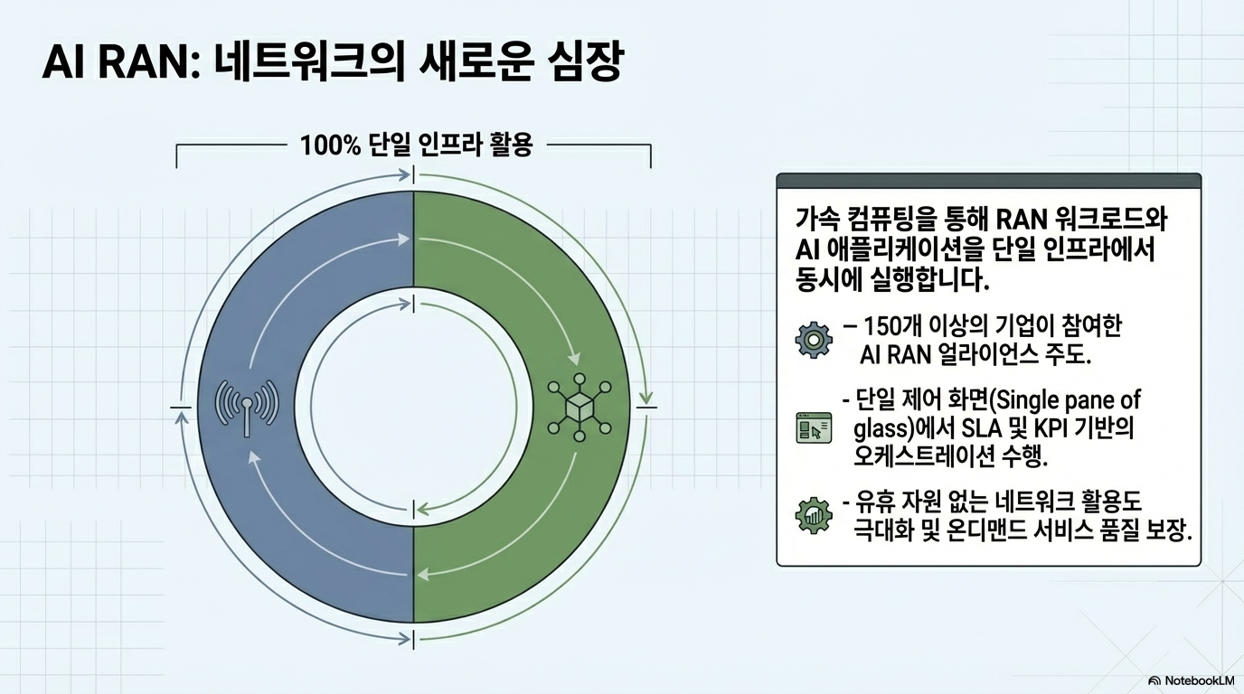 - 인프라의 이중 활용: 동일한 하드웨어 위에서 무선 접속망(RAN)과 AI 애플리케이션을 동시에 구동하여 자원 효율성을 극대화합니다.