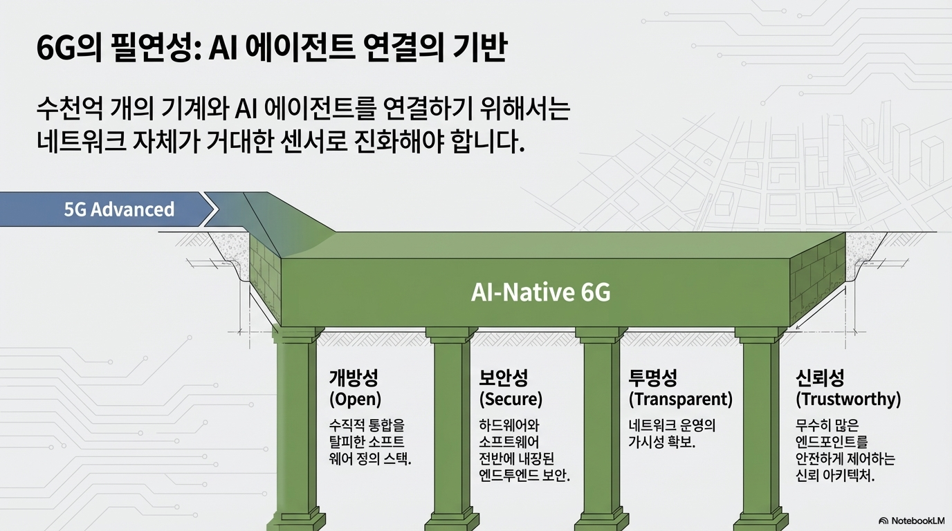 - 3대 거버넌스 원칙: 미래 6G 그리드는 **'개방성(Open), 보안성(Secure), 신뢰성(Trusted)'**이라는 전략적 기둥 위에 세워져야 합니다. 이는 특정 벤더에 종속되지 않는 소프트웨어 정의 기반의 투명한 인프라를 지향합니다.