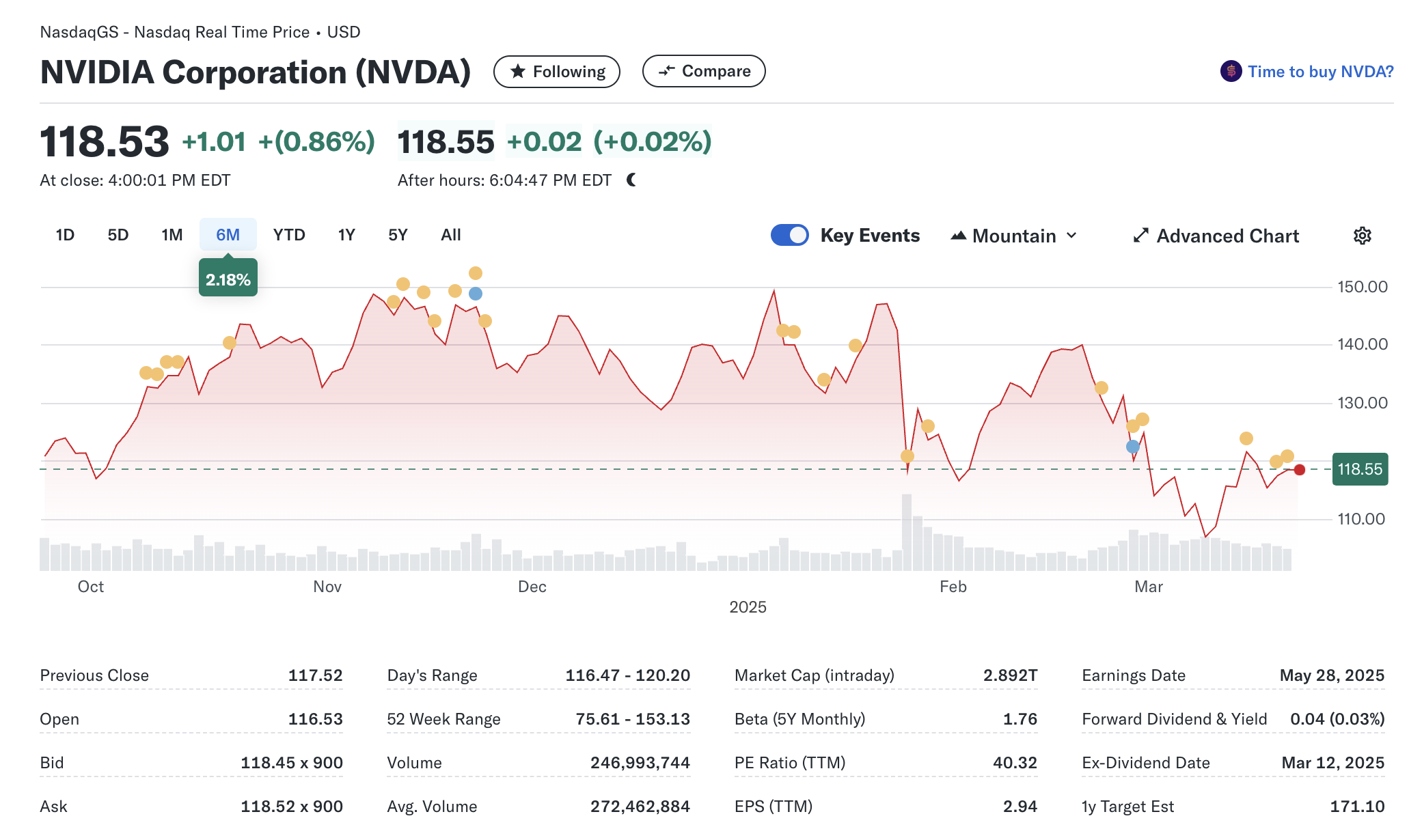 젠슨 황 CEO의 GTC 2025 키노트 발표가 있던 3월 19일, Nvidia의 주가는 3% 이상 하락했다. 연초 대비 12.5% 하락한 상태이며, 이는 작년 같은 시기 81% 상승했던 것과는 큰 대조를 이룬다.