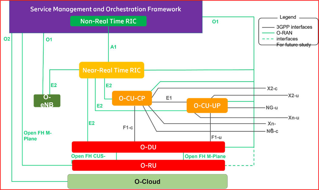서비스 관리 및 오케스트레이션 프레임워크와 인프라스트럭처 관리 프레임워크 간의 연결을 지원하며, O-RAN 가상 네트워크 기능을 지원합니다.