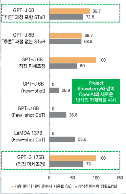 Strawberry는 STaR(Self-Taught Reasoning) 접근 방식을 도입하여 AI 모델의 추론 능력을 극대화하고 있습니다. 이 접근 방식은 AI가 각 질문에 대해 답변을 생성하고, 그 답변이 왜 그러한지에 대한 논리적 근거를 스스로 학습하도록 하는 것입니다. 이를 통해 AI는 스스로 오류를 수정하고 더 나은 답변을 제공할 수 있게 됩니다.
