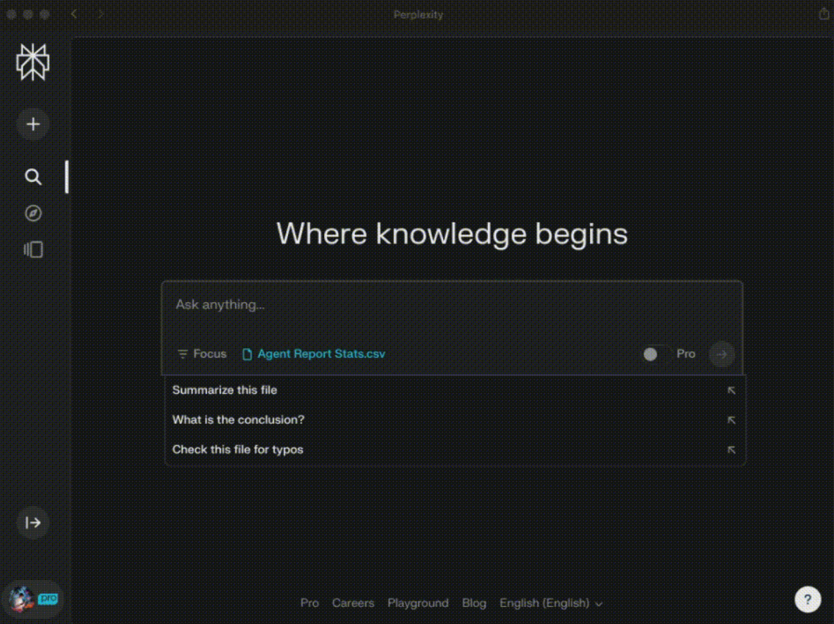 Perplexity Pro는 단순 검색을 넘어서, 사용자가 파일을 업로드하고 해당 파일에 관한 질문을 할 수 있는 기능을 제공합니다. 이는 문서나 데이터를 기반으로 한 세부적인 질문에 유용하며, 복잡한 정보 분석에도 도움을 줍니다.