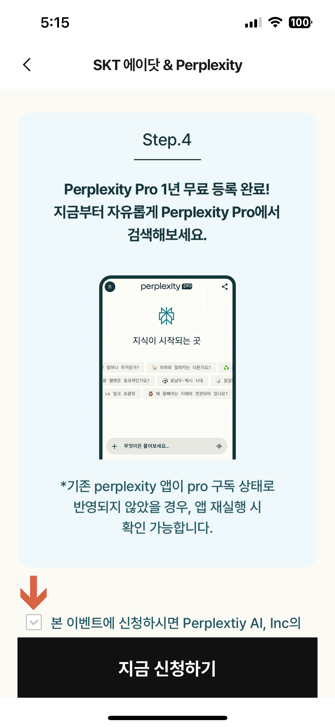 이번 론칭 이벤트는 SK 텔레콤 사용자라면 누구나 참여할 수 있습니다. 아래 간단한 절차를 따라 Perplexity Pro를 1년간 무료로 이용해보세요!