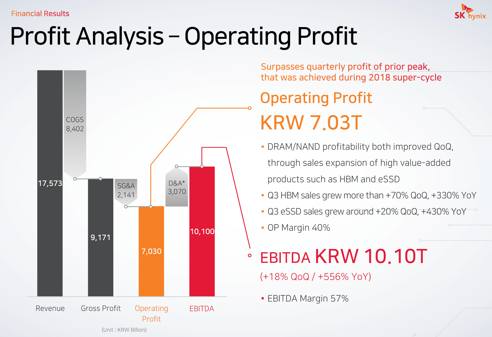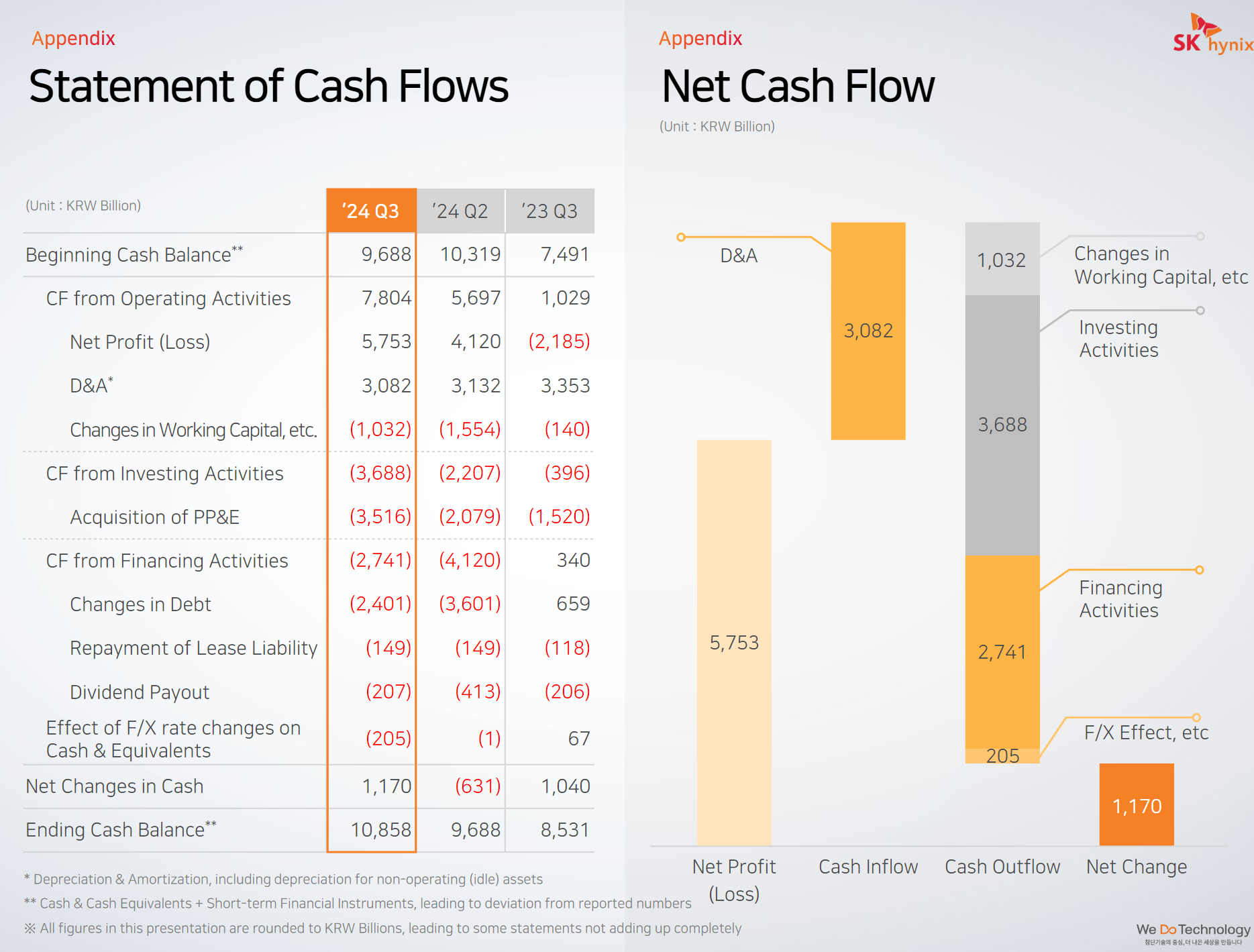 - SK 하이닉스는 감가상각비가 포함된 수익성에서도 이처럼 큰 폭의 성장을 기록하며, 전반적인 비용 구조가 개선된 상태임을 보여줍니다.