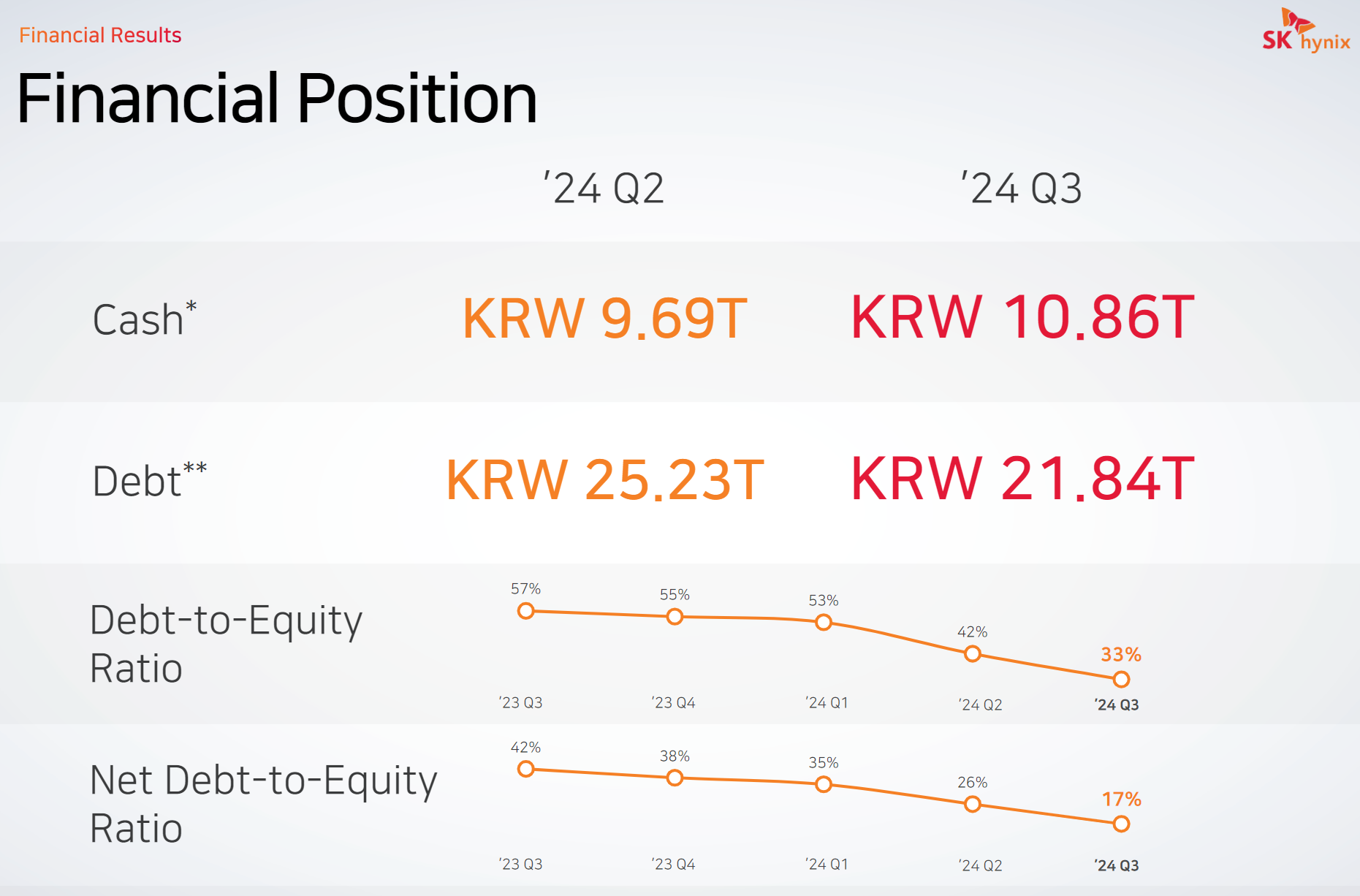 - 부채 감소는 SK 하이닉스의 재무 건전성 개선에 기여하고 있으며, 이는 향후 추가적인 투자나 비용 절감 정책을 시행하는 데 긍정적인 영향을 미칠 것으로 예상됩니다.