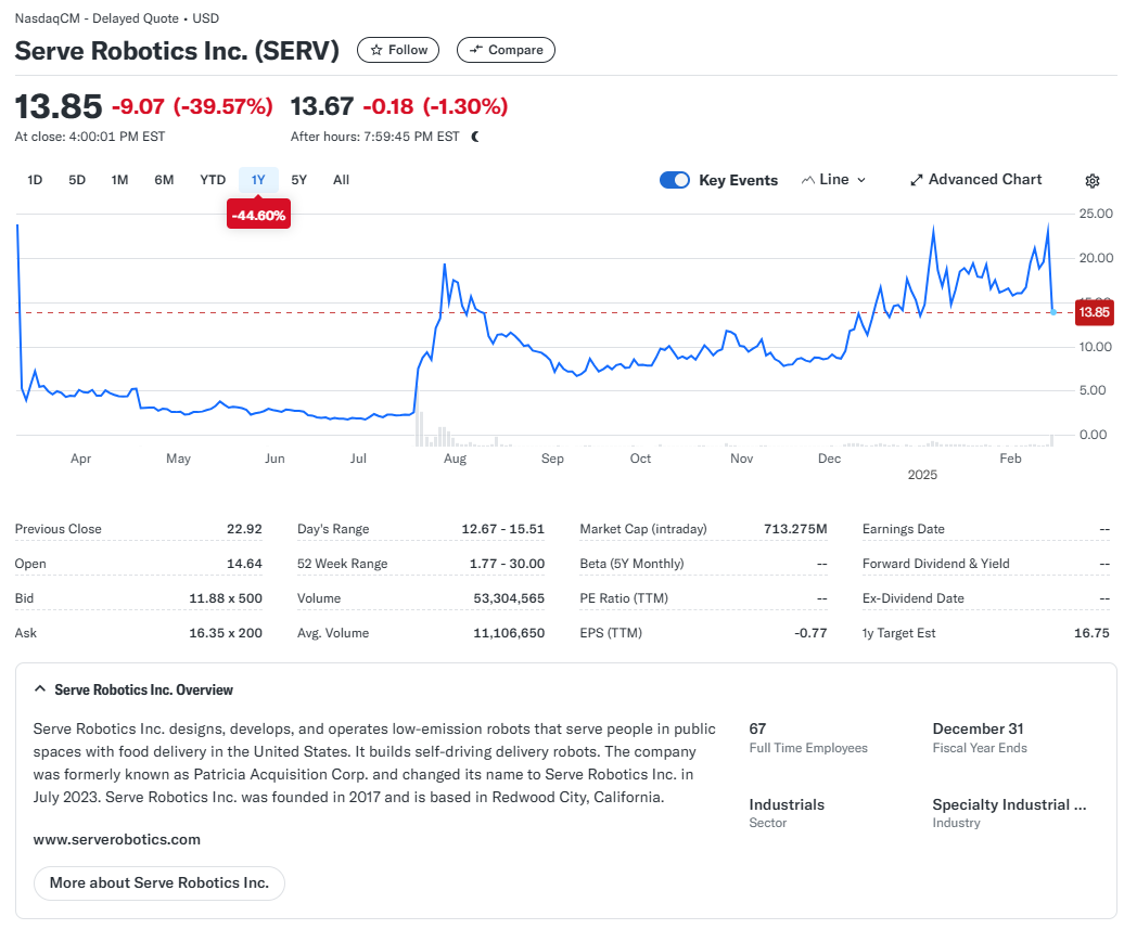 최근 **엔비디아(Nvidia)**가 **사운드하운드 AI(SoundHound AI)**와 **서브 로보틱스(Serve Robotics)**의 주식을 모두 매각했다는 소식이 전해지자, 두 회사의 주가는 즉각적으로 하락세를 보였습니다.