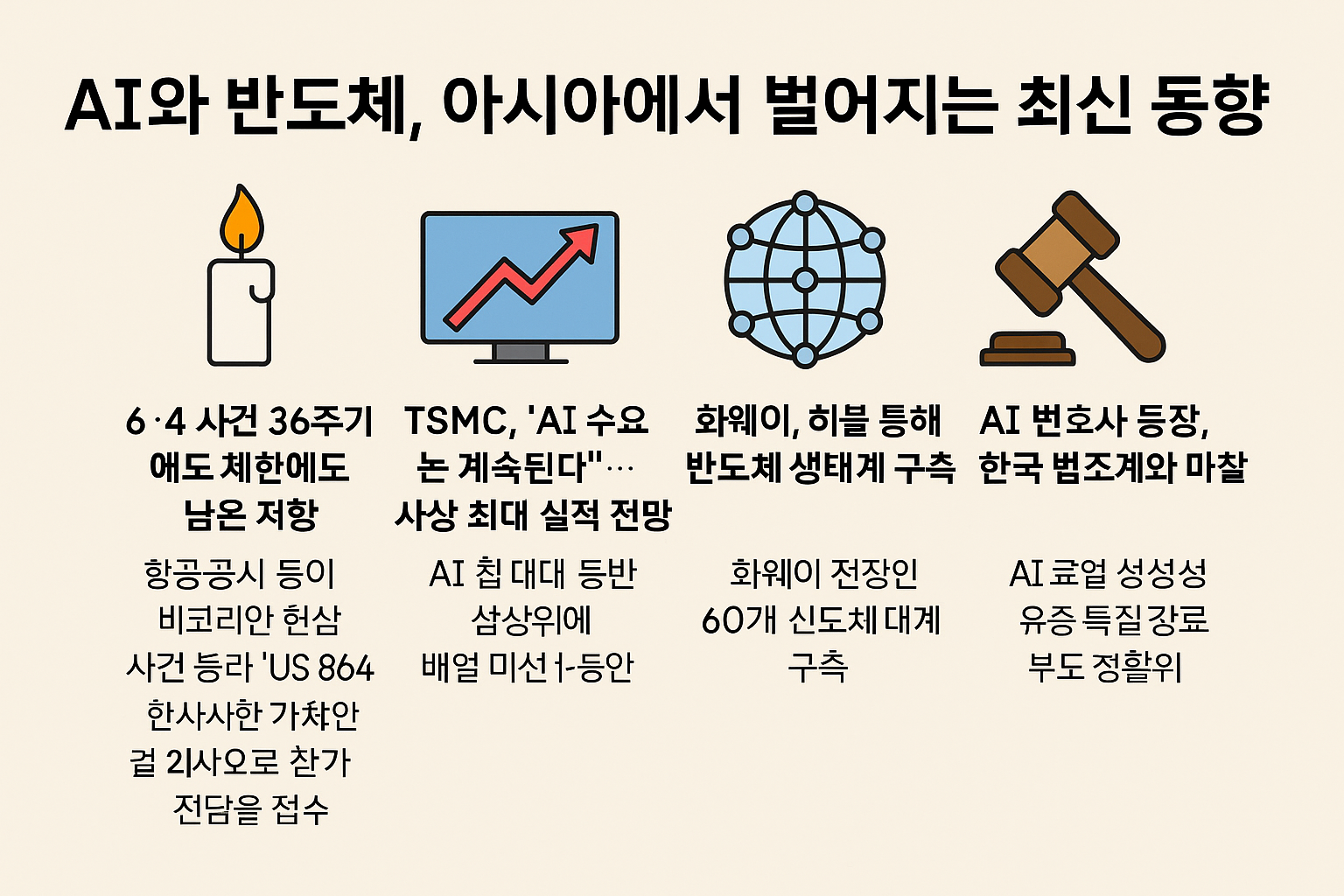 2025년 6월의 홍콩은 그 자체로 하나의 상징이었습니다. 한쪽에서는 톈안먼 6.4 사건을 기리는 시민들의 조용한 저항이 있었고, 다른 한쪽에서는 화웨이와 TSMC, 샤오미 같은 기업들이 AI와 반도체 기술을 앞세워 세계 시장에서 새로운 패권을 구축하고 있습니다.