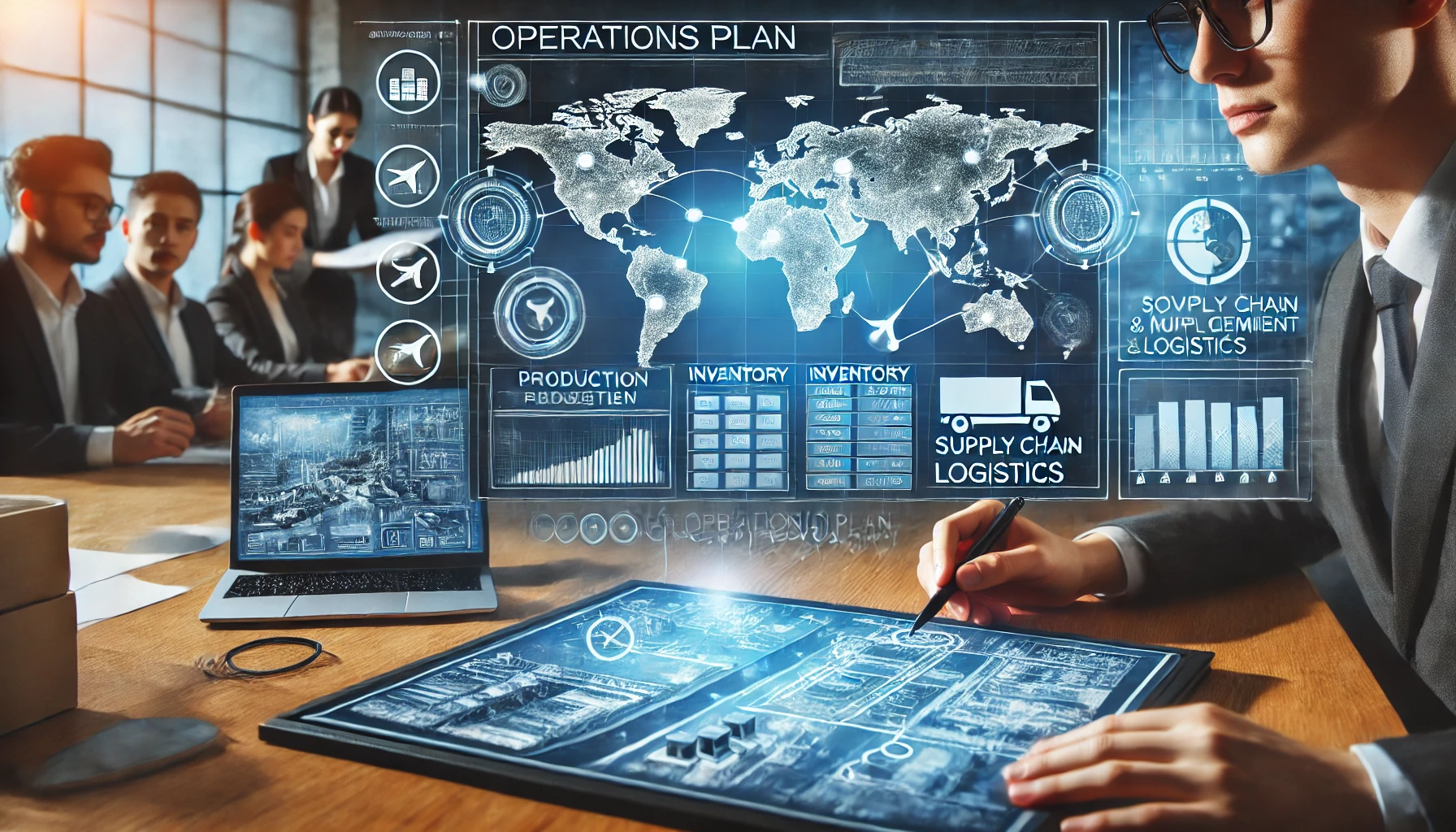 The operations plan focuses on production and supply chain management. AI effectively helps optimize supply chains, predict maintenance needs, and manage inventory.